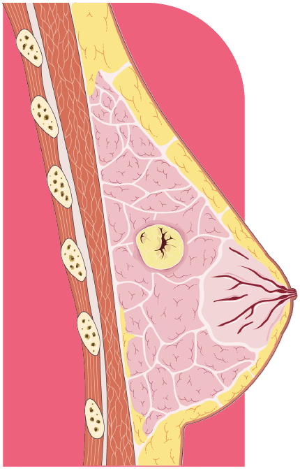 El cáncer se origina cuando las células de la mama empiezan a cambiar y crecer sin control, formando un tumor.